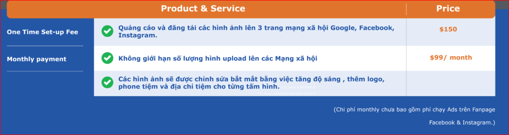 -Quảng cáo và đăng tải các hình ảnh lên 4 trang mạng xã hội: Google, Facebook, Instagram, Tiktok.
